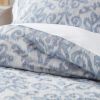 This elegant duvet cover set is made exclusively in Europe from 30% Linen and 70% Cotton jacquard. Featuring an exquisite regal pattern in blue on a soft bluish/grey background. The duvet cover comes with 2.5cm flanges on 3 sides and each set comes with matching oxford pillowcases.